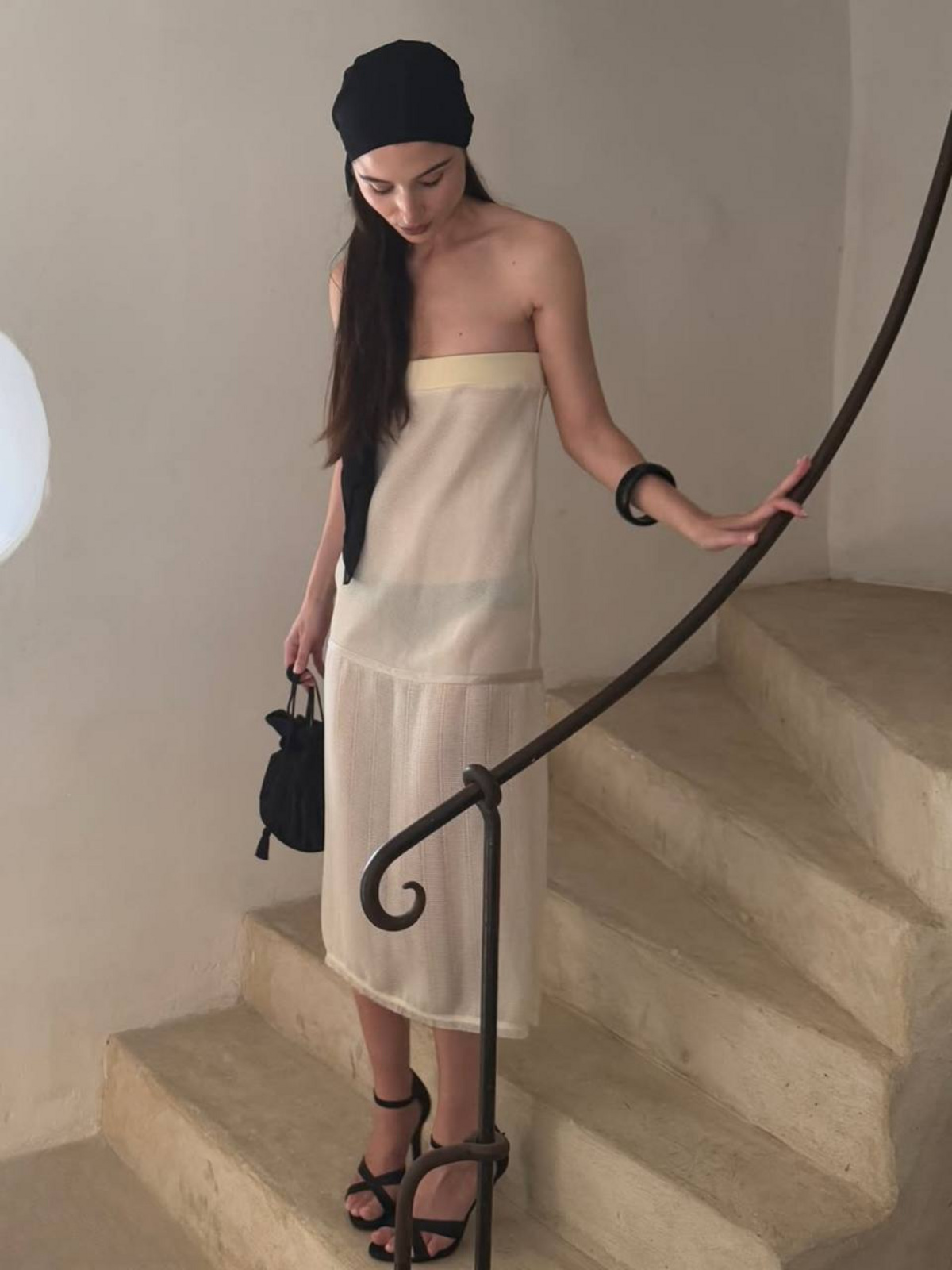 Один из наиболее деликатных трендов этого лета — minimal layering. Его суть — в сочетании нескольких относительно тонких слоев одежды, а также в легком движении ткани. При ходьбе вещи словно создают мягкие волны, подчеркивая текучесть силуэта. Это не столько про многослойность в классическом понимании, сколько про текстуру и поведение материала. Особенно популярны сейчас шелк, органза и атлас.