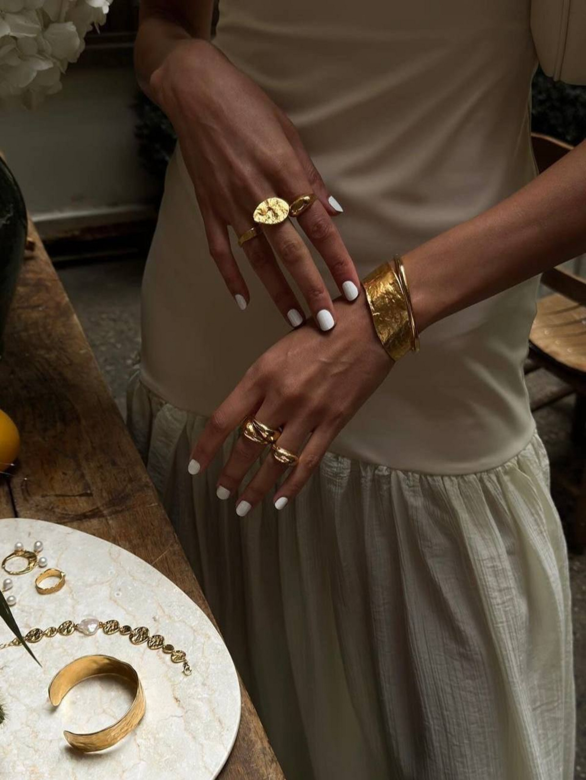 Визуально Goddess Energy отсылает к образам древнегреческих богинь: струящиеся макси-платья с драпировками, шелк, оборки, массивные золотистые украшения, топы с вышивкой, светлые и теплые природные оттенки. В прическах — акцент на мягкие косы и естественный объем.