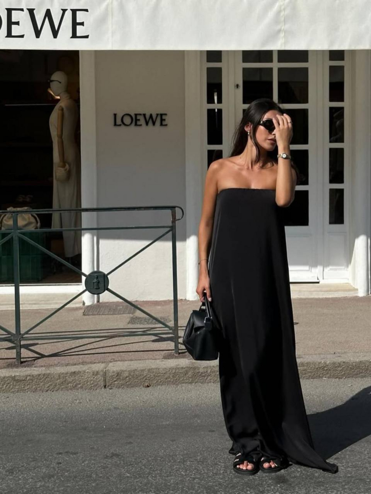 Летом 2025 особенно заметен интерес к вытянутым, прямым силуэтам. В этом контексте на первый план выходят платья без бретелей — не облегающие, а скорее свободного кроя. Они мягко очерчивают фигуру, оставаясь при этом удобными и ненавязчивыми. В тренде — полупрозрачные варианты для теплых вечеров августа и простые трикотажные модели для повседневности.