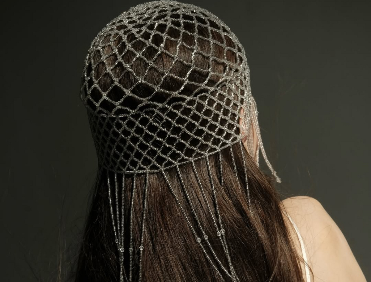 Плетеный аксессуар на голову навевает этнические мотивы. В сезоне 2025 популярны не только головные уборы из шнуров. Особое место в сердцах модников заняли шапочки из бисера. Помимо классических вариантов, часто встречаются с бахромой и дополнительными интересными деталями.