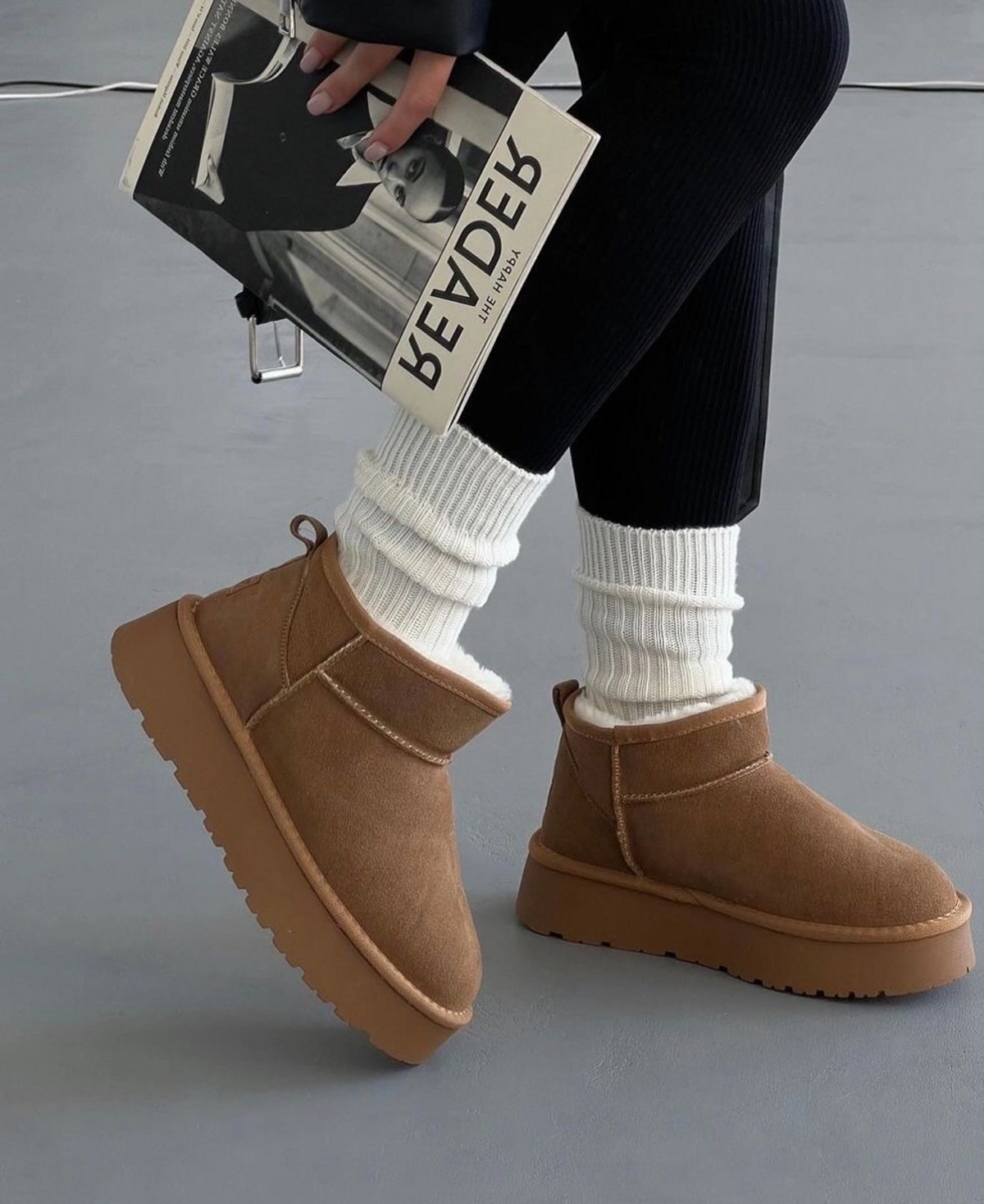 Вечная классика, которую вы либо обожаете, либо ненавидите. Этот год подарил нам необычные варианты угг — меховые и длинные. Первые скорее про уют и плюшевость, которую не оставили без внимания модники, а вторые — дорогая небрежность из домашней обуви, которую теперь сочетают с пальто и жакетами.
