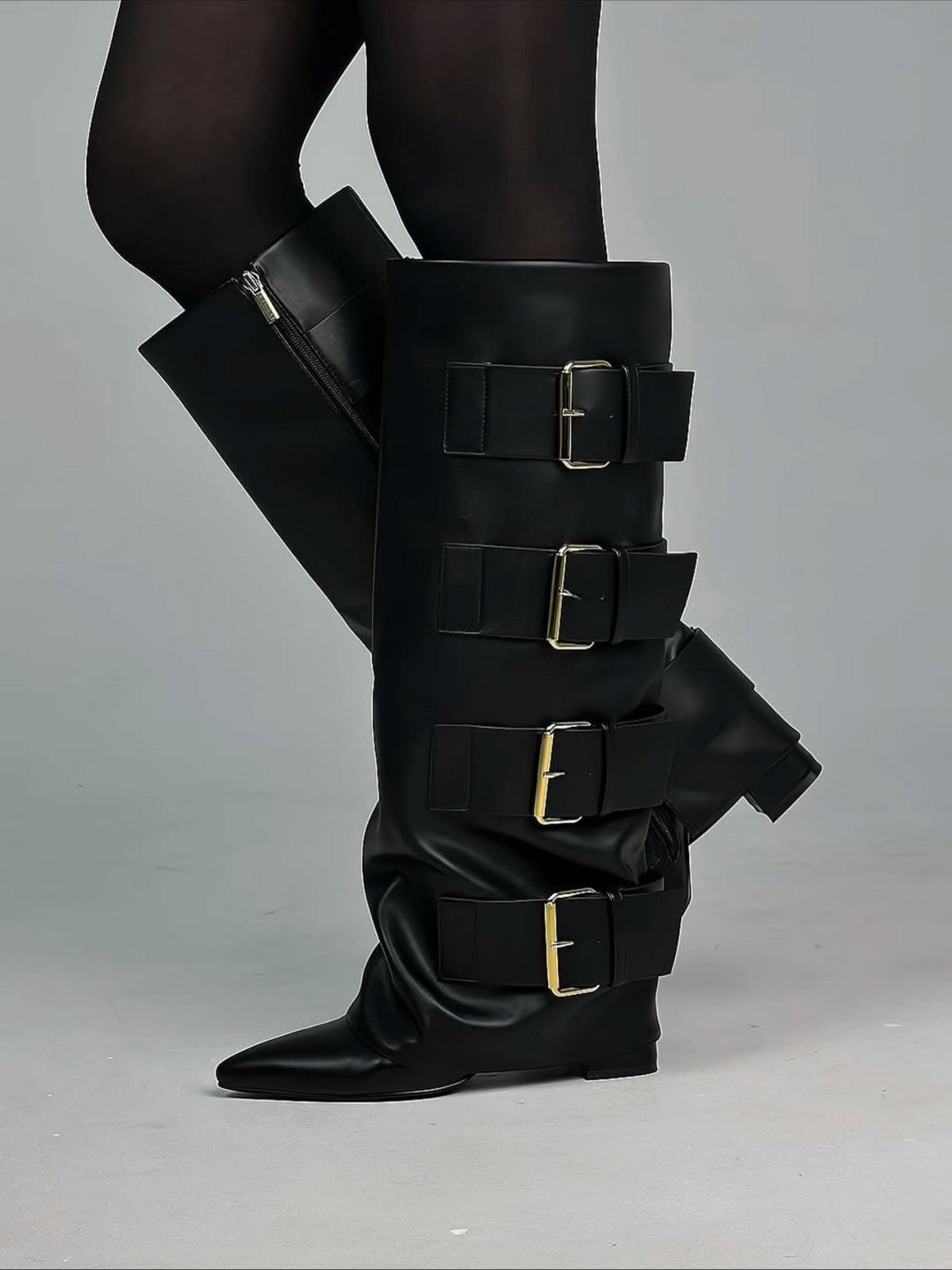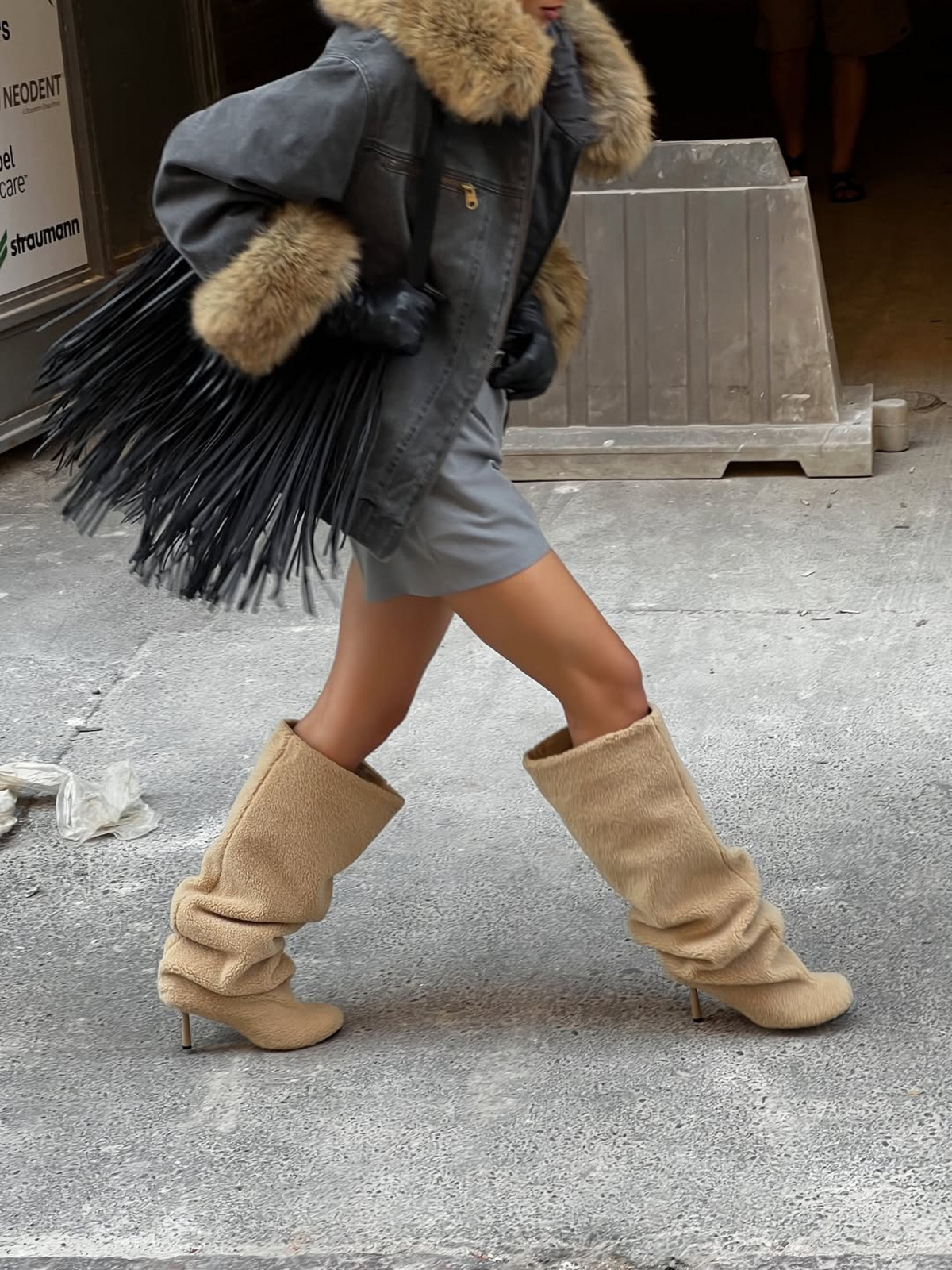 Главный тренд нулевых возвращается к нам зимой 2026. Еще осенью в моду вошла обувь с широким голенищем, однако именно зимой такие сапоги-гармошки стали привлекать к себе особое внимание. Среди популярных моделей преобладает замша шоколадного оттенка и кожа с заклепками.