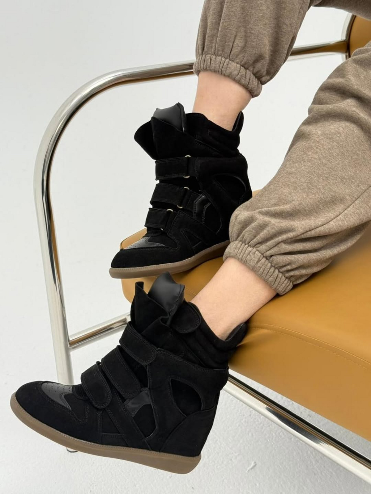Ностальгия по прошлому и культ Изабель Марант в моде дошли до нас в образе сникерсов. Такие кроссовки на каблуке когда-то уже были на пике популярности — теперь их надевают скорее для эксперимента и эпатажности образа из 10-х.