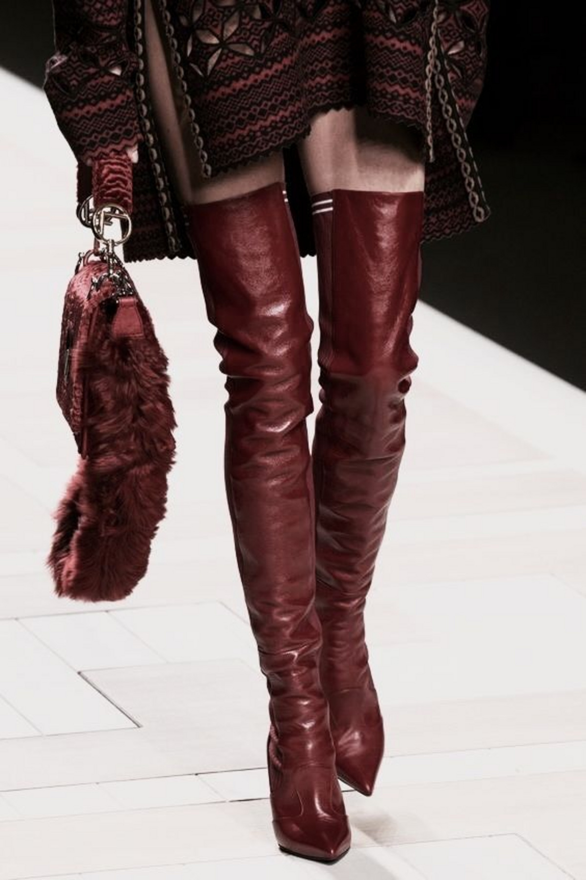 На контрасте с широкой колодкой в топ зимних сапог попали облегающие. Для многих моделей, заинтересовавших фэшн-сторону в этом сезоне, характерен острый носок и яркий оттенок. Помимо черной и бежевой классики, сапоги-чулки начали делать в красном, зеленом, синем и других цветах, делая обувь акцентной деталью образа.