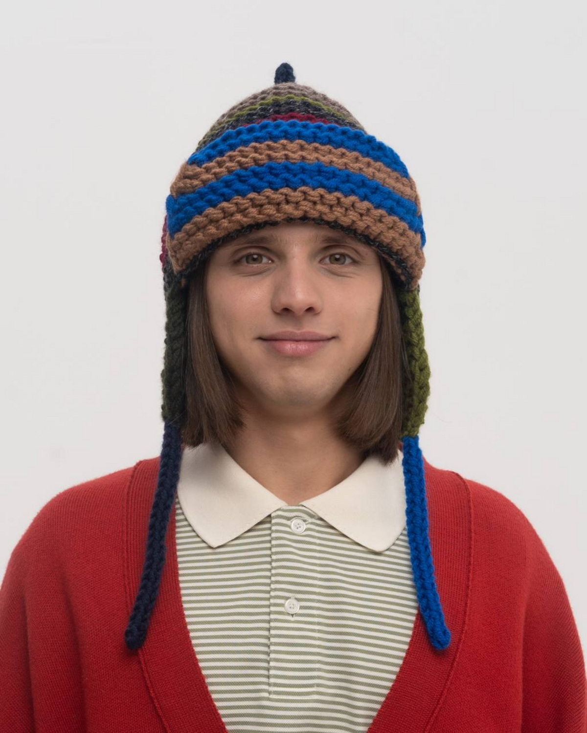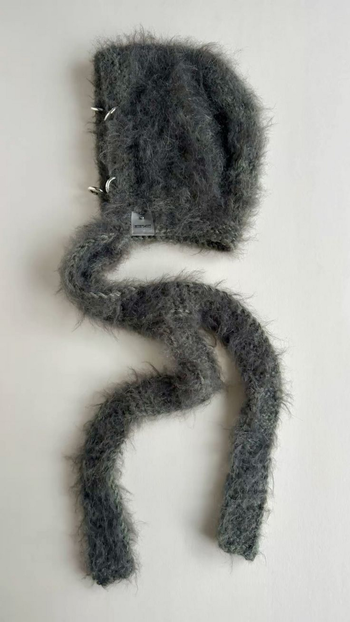 Такая модель с нами уже второй год. Этой зимой на первый план выходят пушистые модели и с длинными завязками, которые можно использовать как шарф.