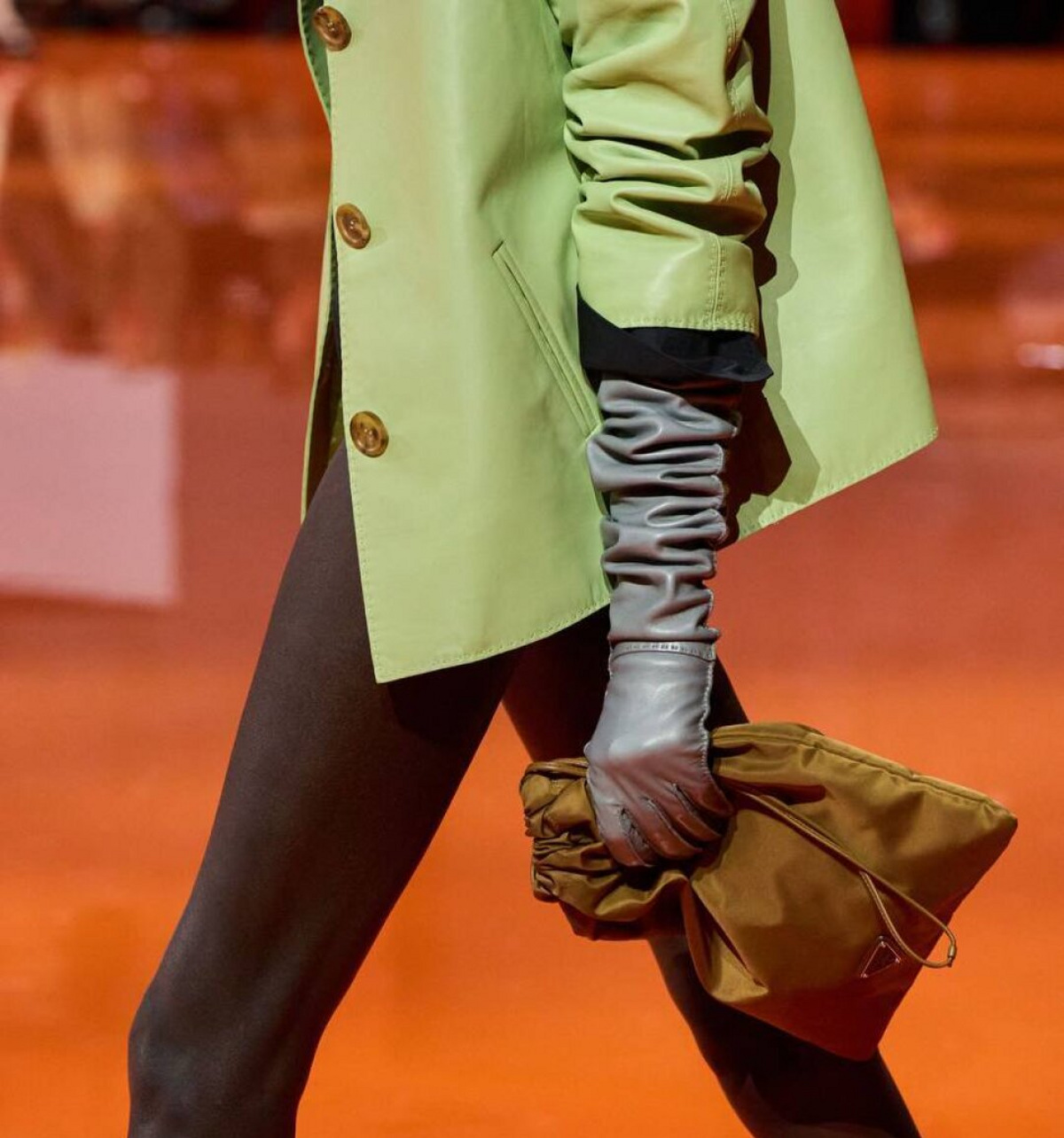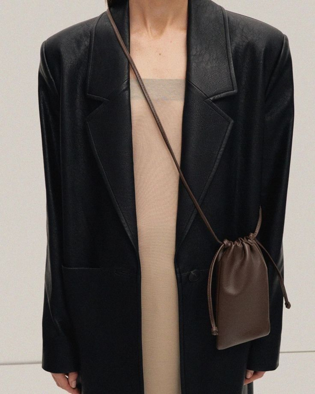 Как вы поняли, маленькие сумочки — маст-хэв этого сезона. Актуальными моделями в сезоне 25/26 будут кожаные и шелковые «пыльники». У многих из них вместо тканевых ручек используют цепочки, а украшают вышивкой и клепками.