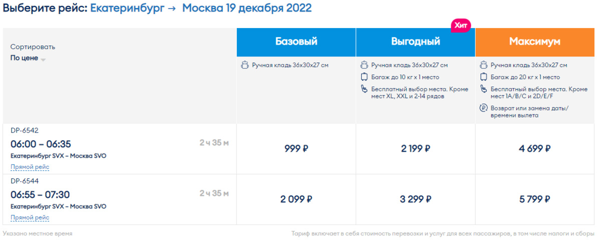 — В момент старта продаж на pobeda.aero предложено более 100 тысяч билетов по минимальным тарифам. Цены на билеты начинаются от 499 рублей, включая все аэропортовые сборы. Распродажа распространяется на полеты с 14 ноября по 20 декабря 2022 года, — сообщается на сайте авиаперевозчика.
