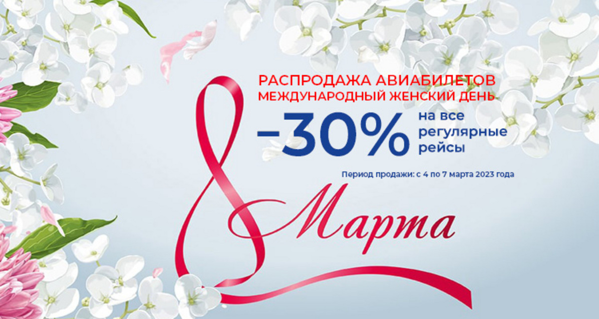 «Распродажа билетов по эксклюзивным тарифам проходит только 4 дня — с 4 по 7 марта 2023 года. Спешите выгодно купить билеты! Осуществить перелеты по сниженным ценам можно в период с 4 марта 2023 года по 25 апреля 2023 года. Скидки коснутся всех действующих тарифов за исключением субсидированных», — сообщается на сайте авиакомпании.