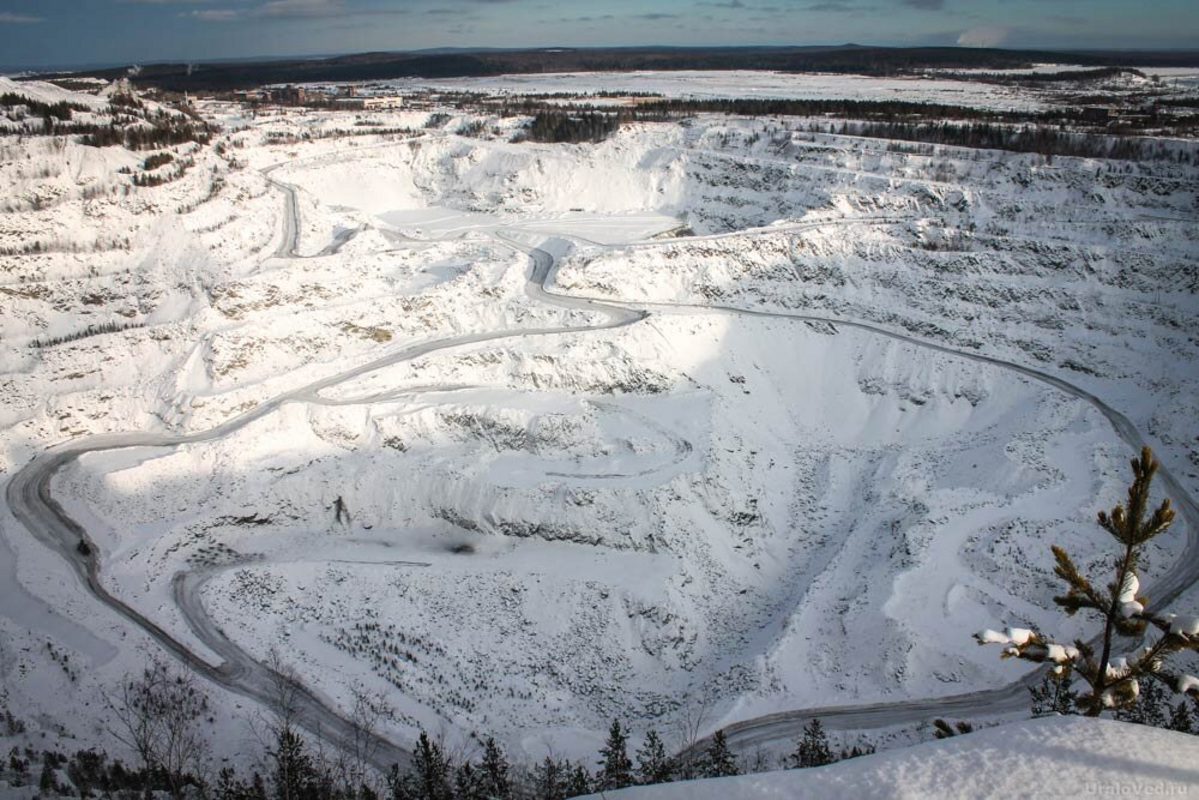 Достопримечательность, с которой открывается безумный вид на заснеженный карьер. Раньше на его месте была гора высокая, а теперь стала яма глубокая. Специально для наслаждения видами и фотосессий на Благодати обустроена смотровая площадка, до которой можно почти вплотную доехать на машине. Однако посмотреть с еще более высокой части горы на город Кушва будет уже не так просто, потому что лестницу часто заметает снегом.