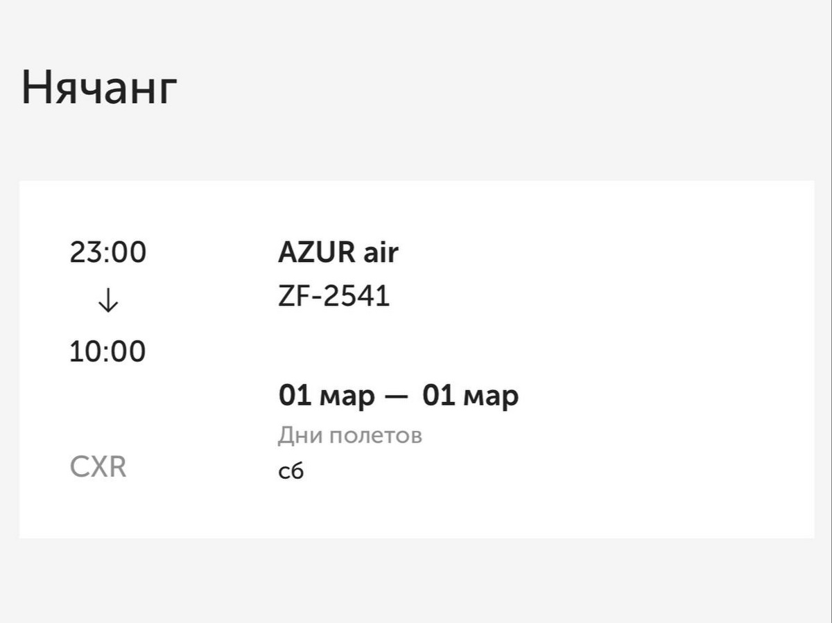 Авиакомпания AZUR Air выполнит прямой рейс во Вьетнам 1 марта, в субботу. По предварительным данным, чартерные самолеты будут летать на курорт примерно раз в десять дней. Время в полете займет 11 часов.
