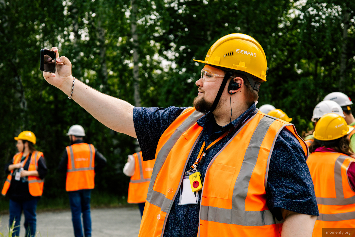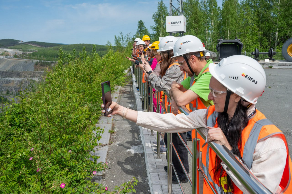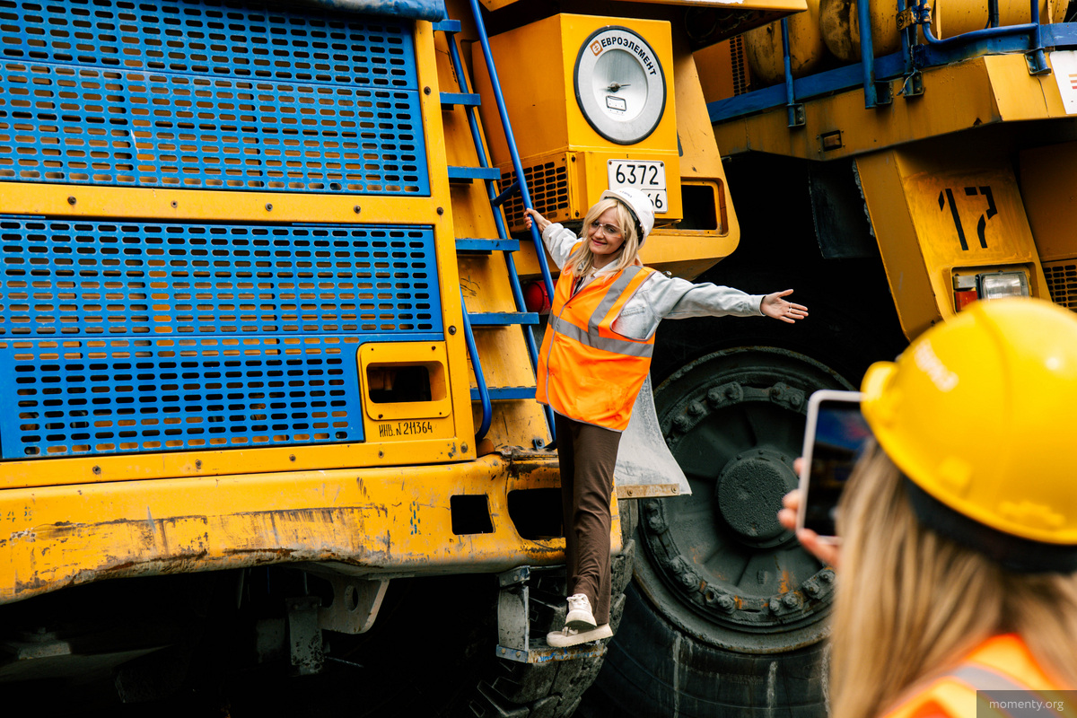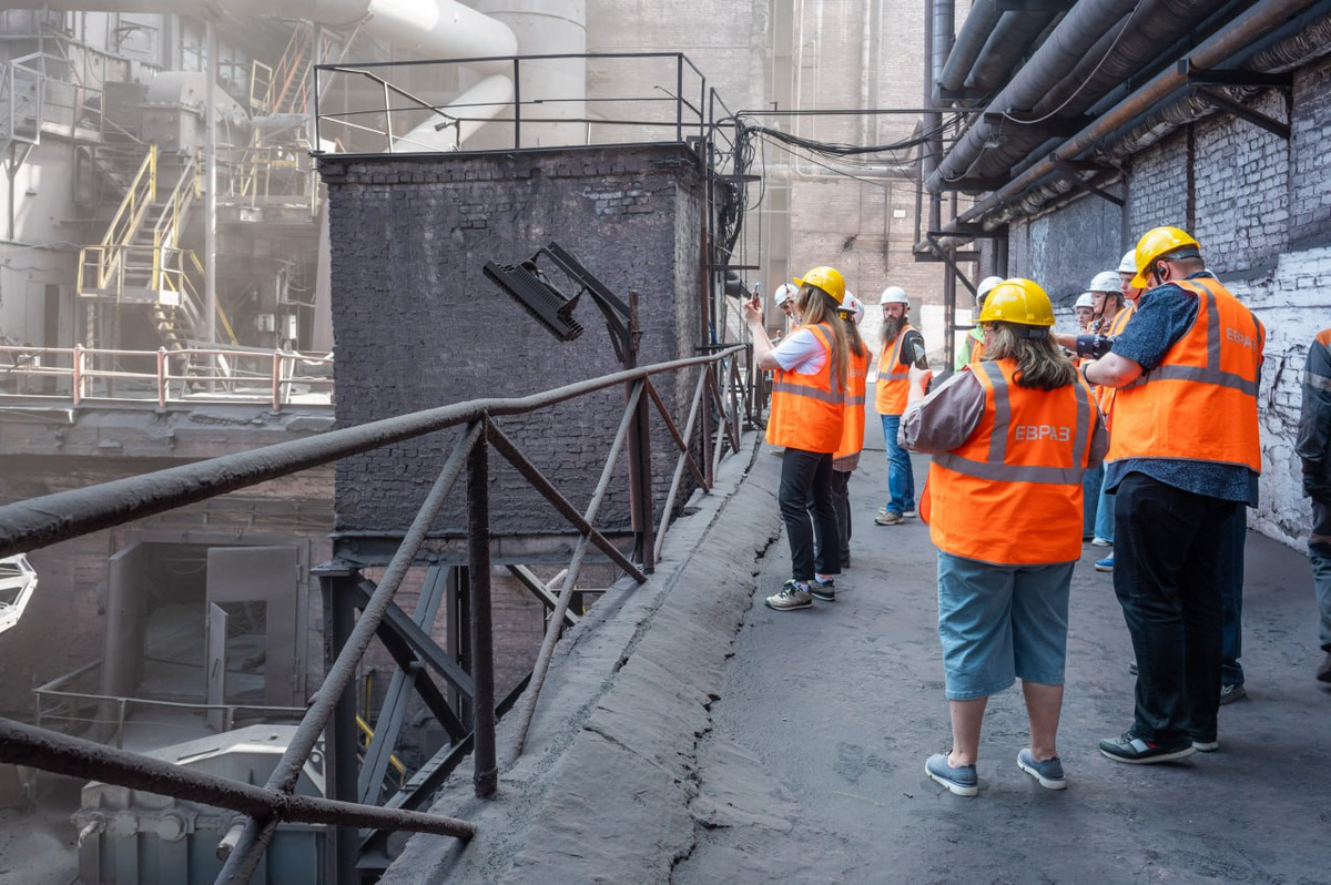 Вот мы уже в автобусе: на головах каски, очки защищают глаза от пыли, а поверх одежды надет яркий жилет — такой же, какие носят сотрудники местного производства ЕВРАЗ КГОК. Это значит, экскурсия начинается. Мы проезжаем мимо зданий комбината: когда-то, по словам гида, производство было совсем маленьким, а на сегодняшний день является одним из крупнейших горных предприятий России.