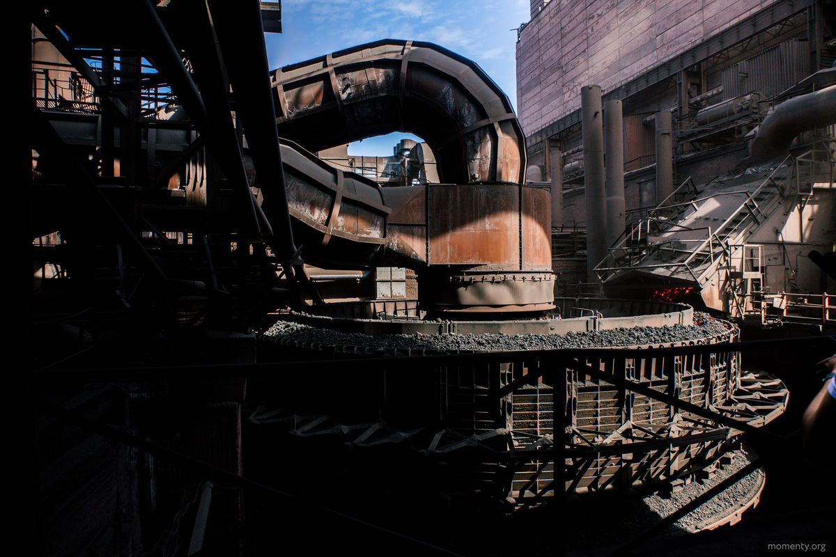 Становится по-настоящему жарко. Мы в цехе, где пекут сырье для доменных печей. Невероятных размеров охлаждающий механизм, в который ссыпается пористый раскаленный камень, похожий на куски пемзы, это агломерат. А совсем скоро мы увидим еще и окатыши, без агломерата и окатышей Качканара невозможна работа многих промышленных предприятий нашей страны. К слову сказать, Нижнетагильский металлургический комбинат полностью работает на сырье отсюда.