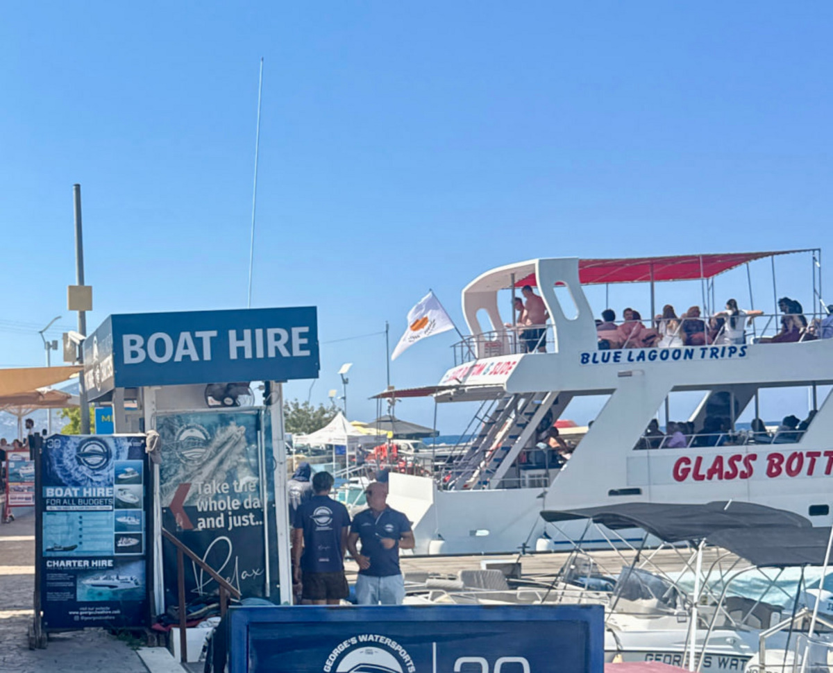 Если вы приехали на Кипр компанией и идея прокатиться на мини-яхте вам кажется привлекательной, то Арина Бирюкова советует арендовать ее на день. Ее компания выбрала Georges Watersports в часе езды от Лимассола. Нюанс: лодкой управлять вы будете сами.