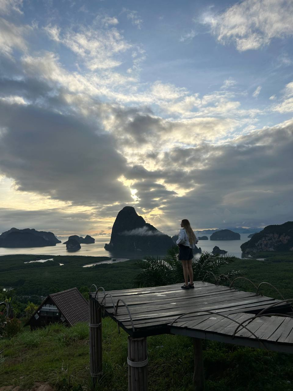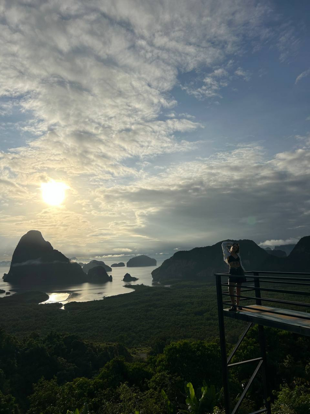 Площадка находится в 30—40 км от Пхукета (около часа езды), и это действительно стоит того. Легендарное место для встречи рассвета: открывается панорамный вид на залив Пханг Нга с десятками известняковых скал, островков и мангровых зарослей, утопающих в утреннем тумане. Когда солнце поднимается над этими скалами — это одно из самых впечатляющих зрелищ в Таиланде.