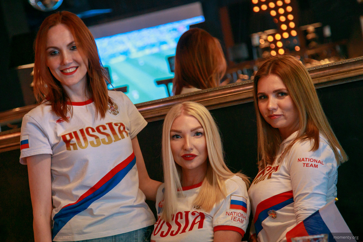За 10 минут до начала матча в «Огоньке» занята половина мест. На остальных — таблички «Зарезервировано». Болельщики постепенно подтягиваются. Девушки решили оставить платья в пол для другого случая и на выход выбрали футболки с атрибутикой чемпионата мира. Мужчины местному колориту изменять не стали и пришли в костюмах.